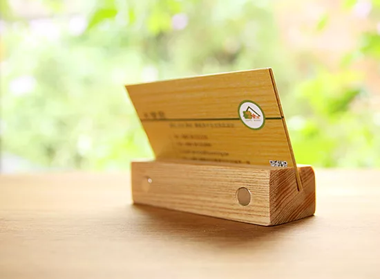 使用越南檜木製作,造型簡單大方,精準設計的凹槽角度方便名片展示,具實用的名片收納功能。